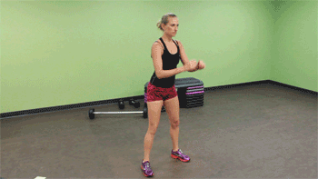 ▷ 抓住一个壶铃,然后做深蹲,没壶铃的也可以用其他重物代替。