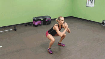▷ 和普通深蹲跳的动作一样,只不过起始动作换成了相扑式。