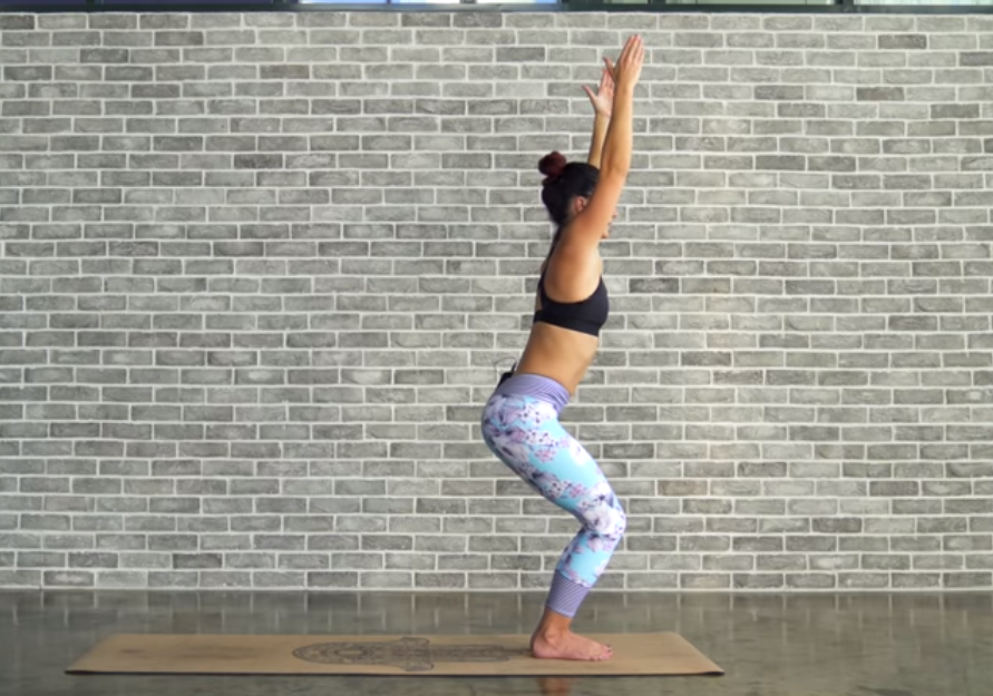 呼气,屈髋屈膝,进入幻椅式