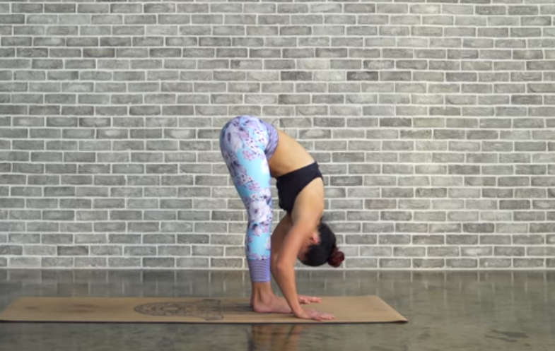 吸气,前屈向下,延展脊柱
